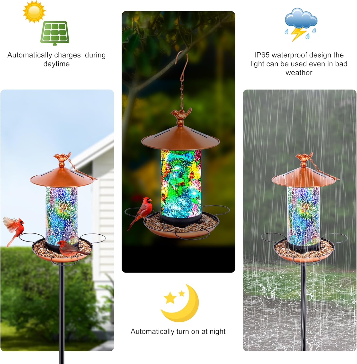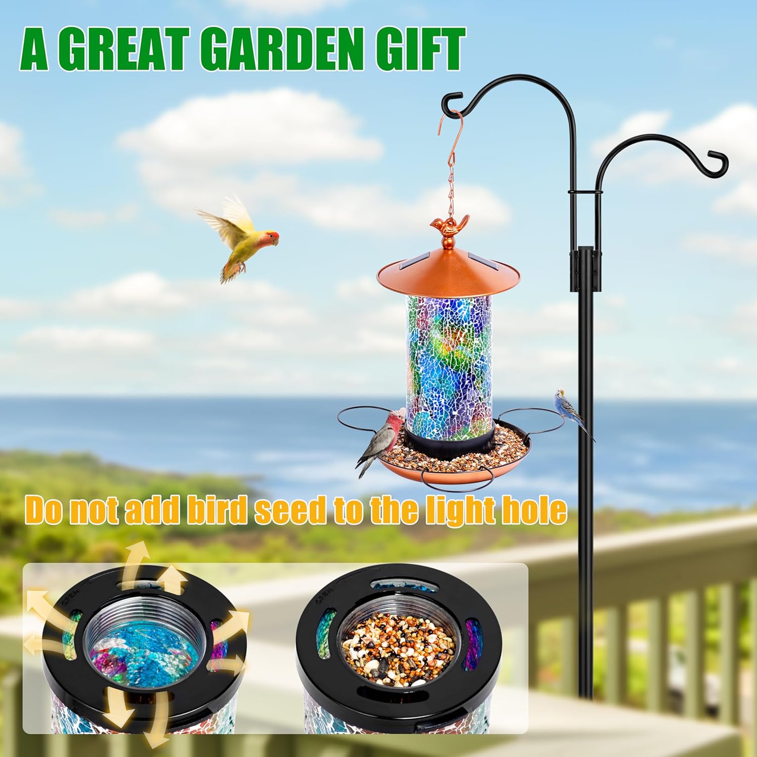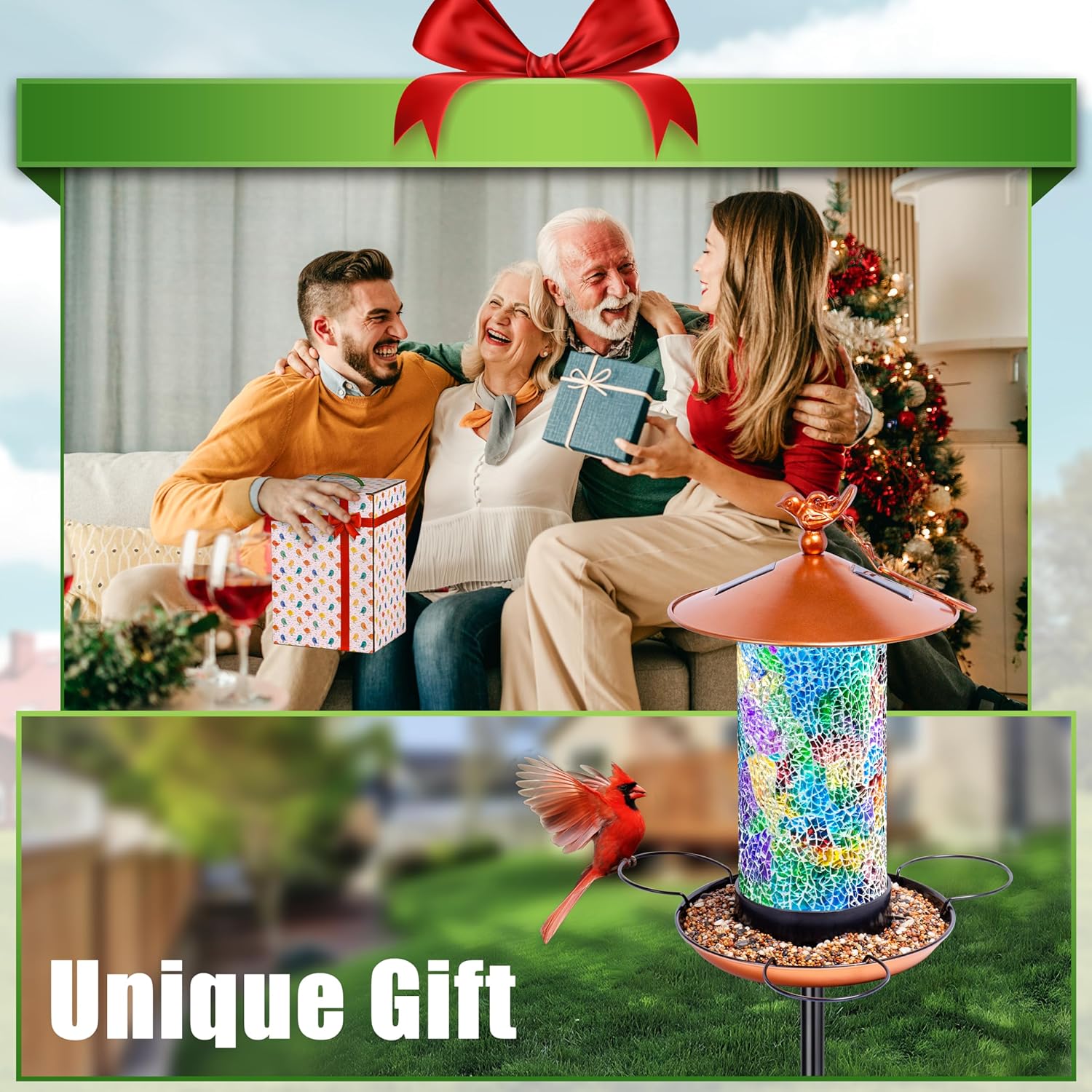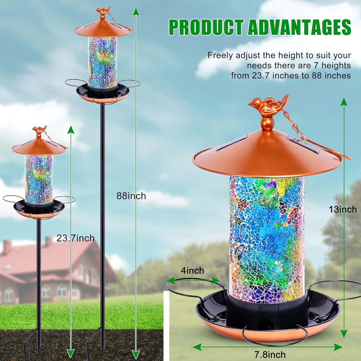 【Great Garden Decor Gift】The gorgeous bird feeder is designed with vintage lantern shapes and hand-made mosaic glass pieces, it combines the beauty of craft and nature, enhances your garden while attracting beautiful birds, is a great gift idea for bird lovers women, men, dad, mom, neighbors, friends as housewarming birthday anniversary gift.