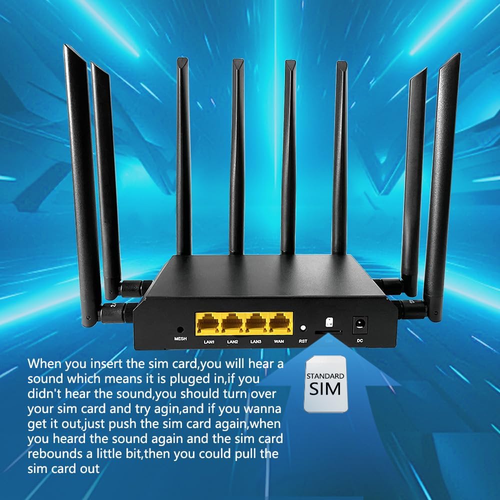 High Gain Antennas For Better Performance: The 6 x 5dBi high-gain antennas boost the sensitivity of the router, improve the signal quality of 4G LTE and Wi-Fi, which is conducive to establishing a Wi-Fi connection at a longer distance.