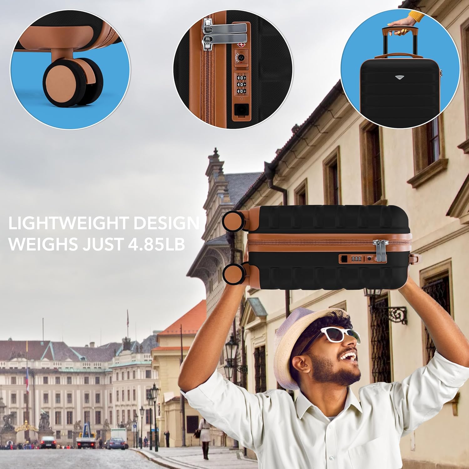 Carry On Suitcase 18x14x8 Hardside Built In TSA Lock & USB Port Lightweight Luggage Silent Double Spinner Wheels Maximum Underseat Carry-On Bag For American & United Approved Airlines