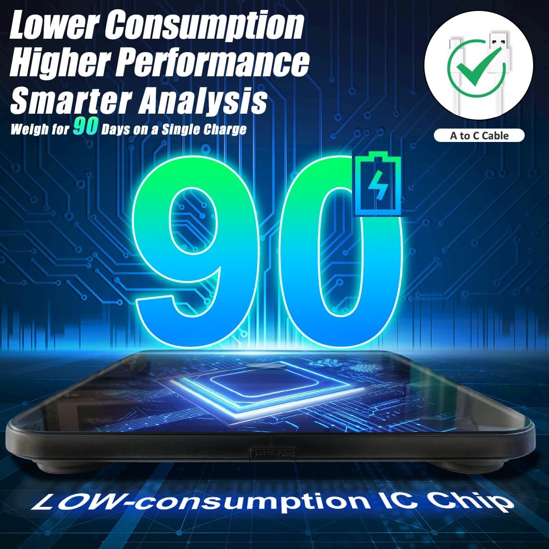 EASY TO USE & LARGER DISPLAY- Upgraded with larger TFT display, larger than Apex Model, adopted ITO-coating to guide your feet to the right place for more accurate results, effortless and immediately displaying measured data. This body weight scale features convenient functions such as auto-on/off, auto-calibration, low battery indicator, and overload indication.