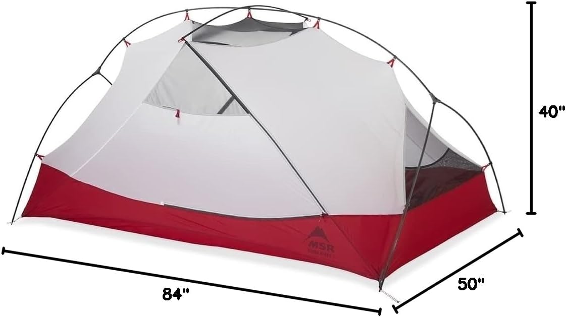 Stop compromising between comfort and weight. Redesigned and lighter than ever, MSR’ s best-selling 3-season Hubba Hubba is one of the most livable backpacking tents available. PRODUCT FEATURES: Tech-Friendly Pockets: Cable ports on all pockets for easy cord management Easy Setup & Packing: Unified hub-and-pole system and symmetrical design make setup super quick; ultra-compact stuff sack Stargazing Mesh: Leave the fly off and watch the stars through the top mesh window Durable Details: Reinforced patches, stitching at guy points and locking anodized stake loop grommets for extra strength Includes: Tent body, rainfly, poles, stakes, guy lines, stuff sack, setup instructions Minimum Weight (Standard): 2 lbs 14 oz Packaged Weight (Standard): 3 lbs 4 oz Floor Dimensions (Standard) in: 84 x 50 in Floor Area (Standard): 29 sq. ft Vestibule Area (Standard): 15 sq. ft Number of Poles: (2) Easton Syclone Freestanding Canopy Fabric: 20D ripstop nylon & DWR Floor Fabric: 20D ripstop nylon 1200mm Durashield polyurethane & DWR Packed Size (Standard): 19 x 4.5 in Number of Doors: 2 Rainfly Fabric: 20D ripstop nylon 1200mm DuraShield polyurethane & silicone Mesh Type: 10D polyester micro-mesh Interior Peak Height (Standard): 40 in Capacity: 2