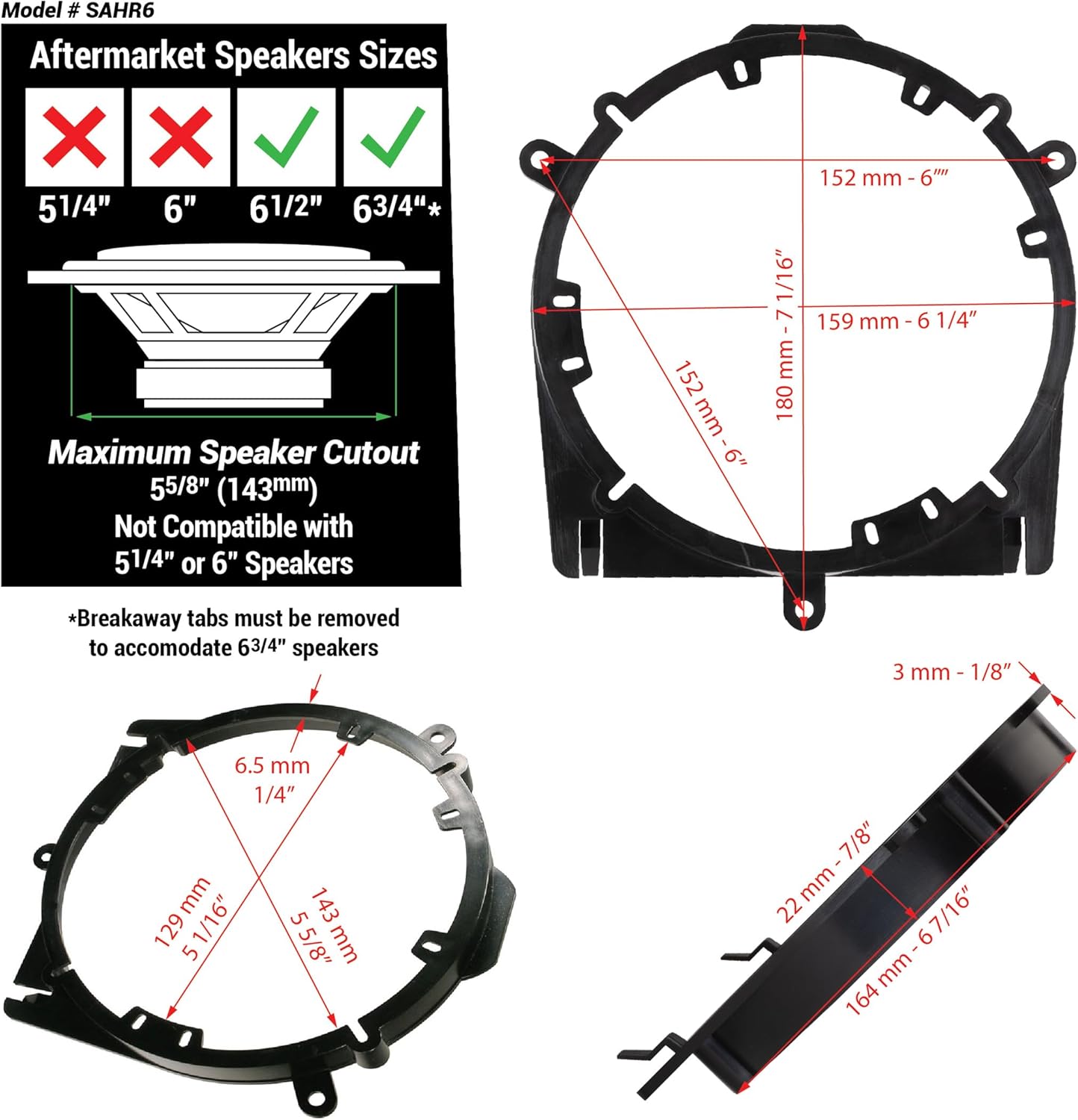 Easy Installation – No special tools needed when installing SAHR6 6.5-6.75” door speaker spacer rings. Scosche speaker adapters use the existing vehicle mounting points; no cutting or drilling required. Perfect for DIY enthusiasts and professionals.